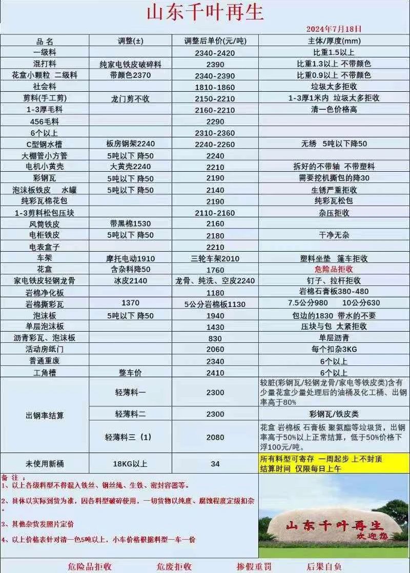 铁屑刨花 废铜价格 废铝价格 废不锈钢