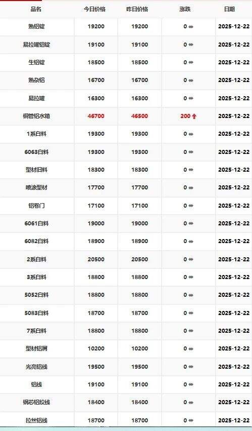 2025年12月22日江西保太有色金属集团有限公司废铝收购价格:多数稳,个别涨200