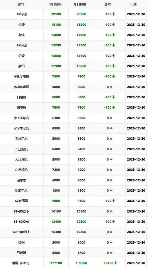 2025年12月30日江西保太有色金属集团有限公司铅锌,电机收购价格