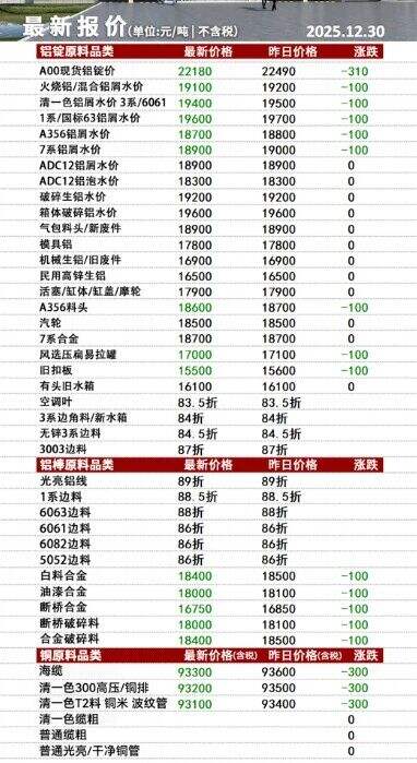 铁屑刨花 废铜价格 废铝价格 废不锈钢