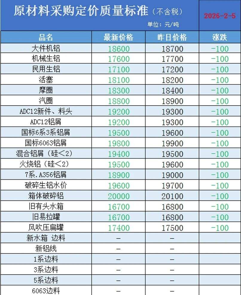 铁屑刨花 废铜价格 废铝价格 废不锈钢