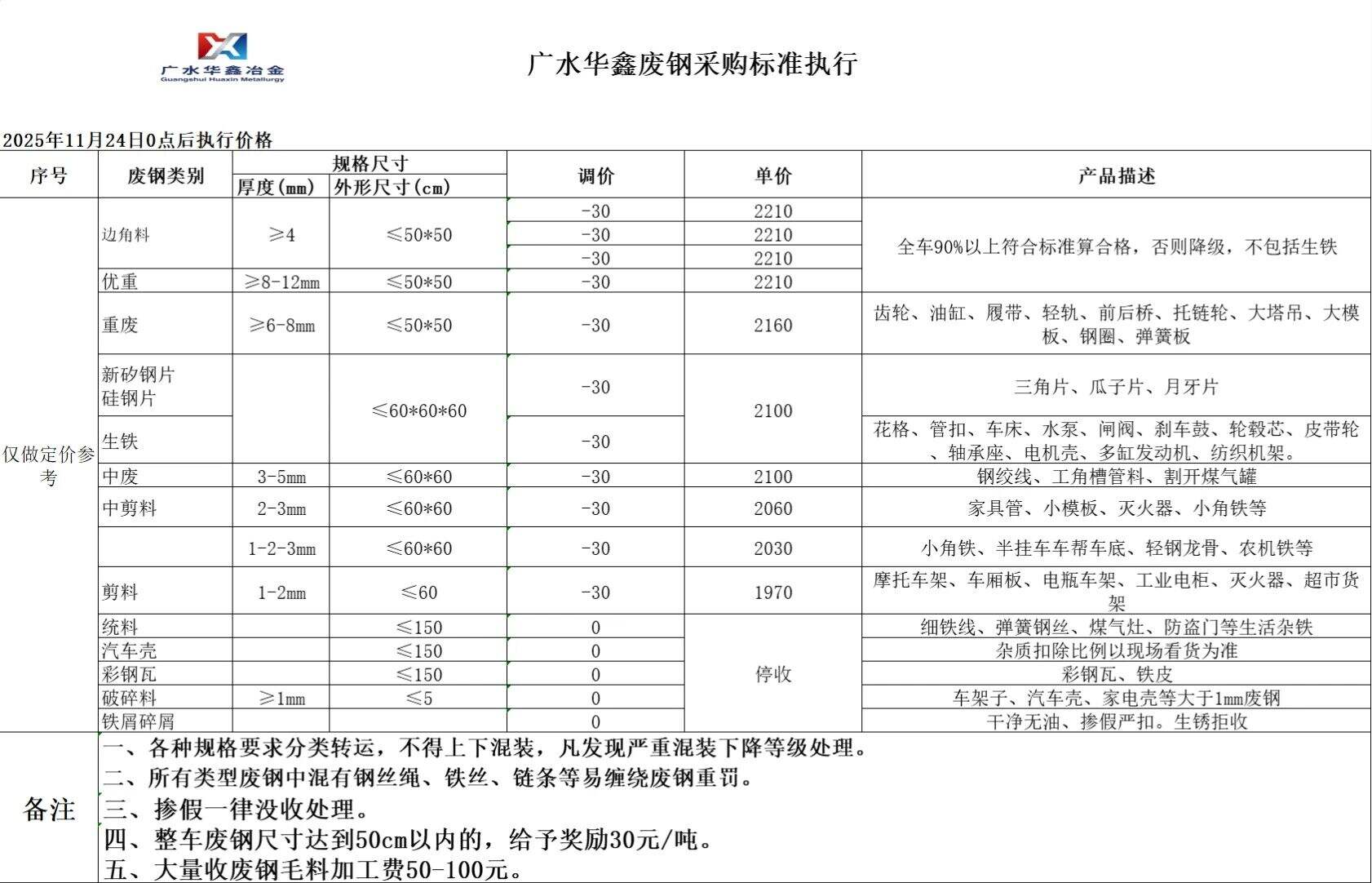 含锌废钢同步下调**元/吨,具体如下:*%增值税价格为:含锌重三****