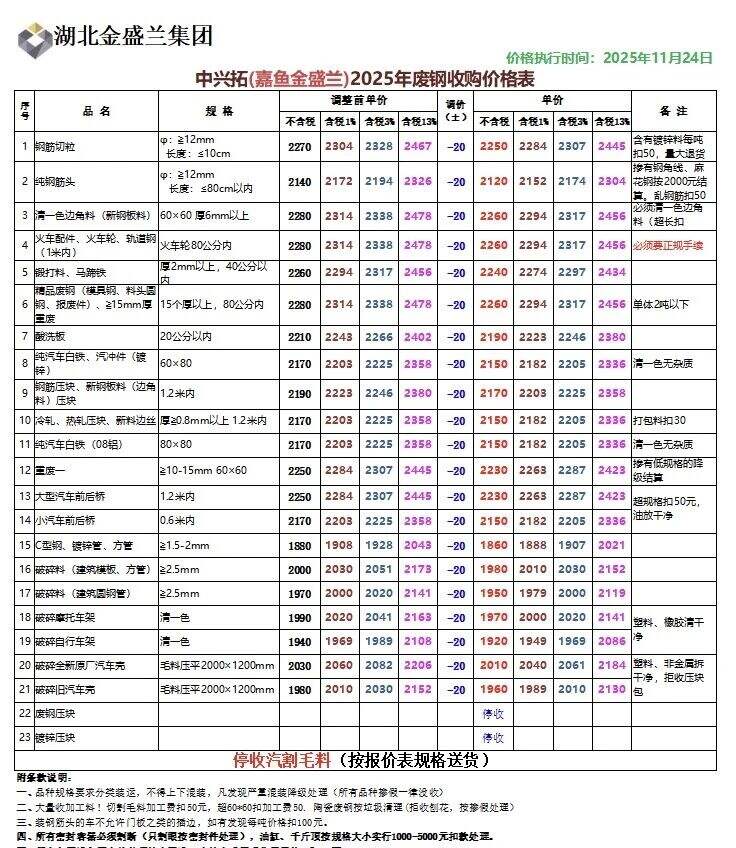 **日湖北中兴拓(嘉鱼金盛兰)废钢跌**:
