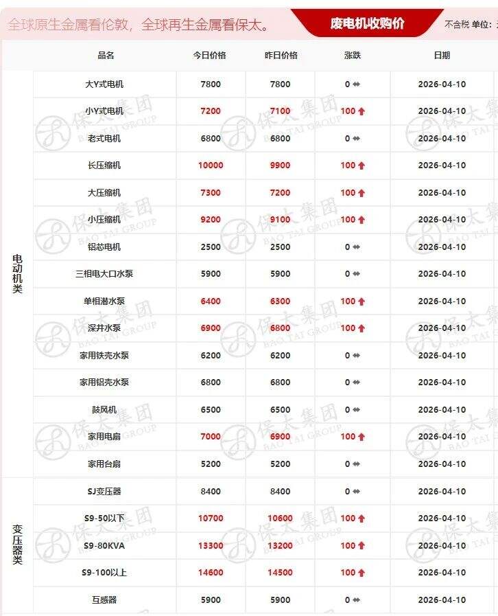 ****年*月**日江西保太有色金属电机、变压器类报价