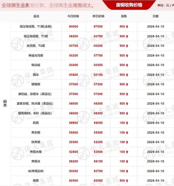 ****年*月**日江西保太有色金属集团有限公司废铜类报价