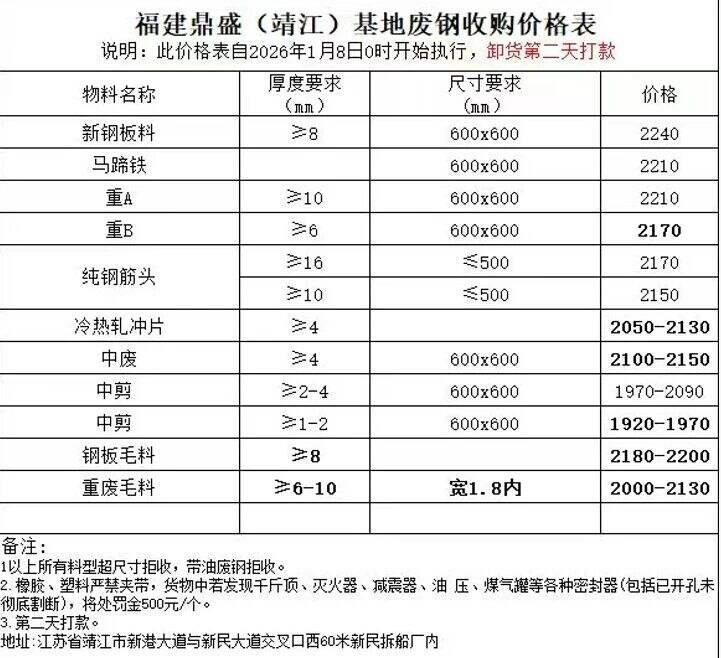 ****年*月*日福建鼎盛(靖江)基地废钢收购价格表