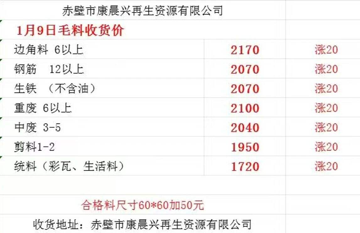 广东欣贸基地废钢调价通知价差标准明细表不变。详见价差明细表编号:XMGD-**-**直采,场地所有料型统一上调**元,下午**:**分执行。(以上调价内容仅针对广东区域)****年**月**日。
