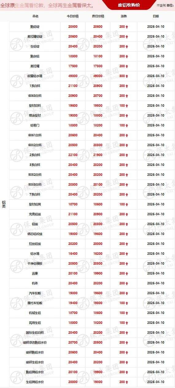 ****年*月**日江西保太有色金属集团有限公司废铝类报价