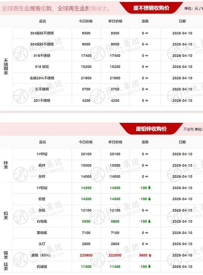 ****年*月**日江西保太有色金属不锈钢,铅,锌类报价