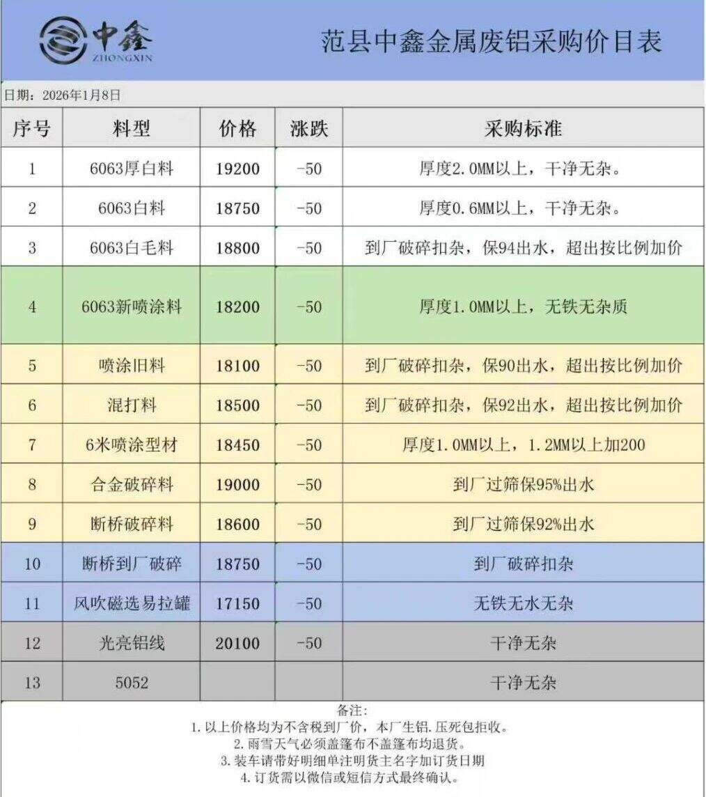 ****年*月*日河南范县中鑫金属制品今日废铝报价