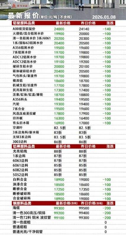****年*月*日江西保太有色金属集团有限公司废铝报价