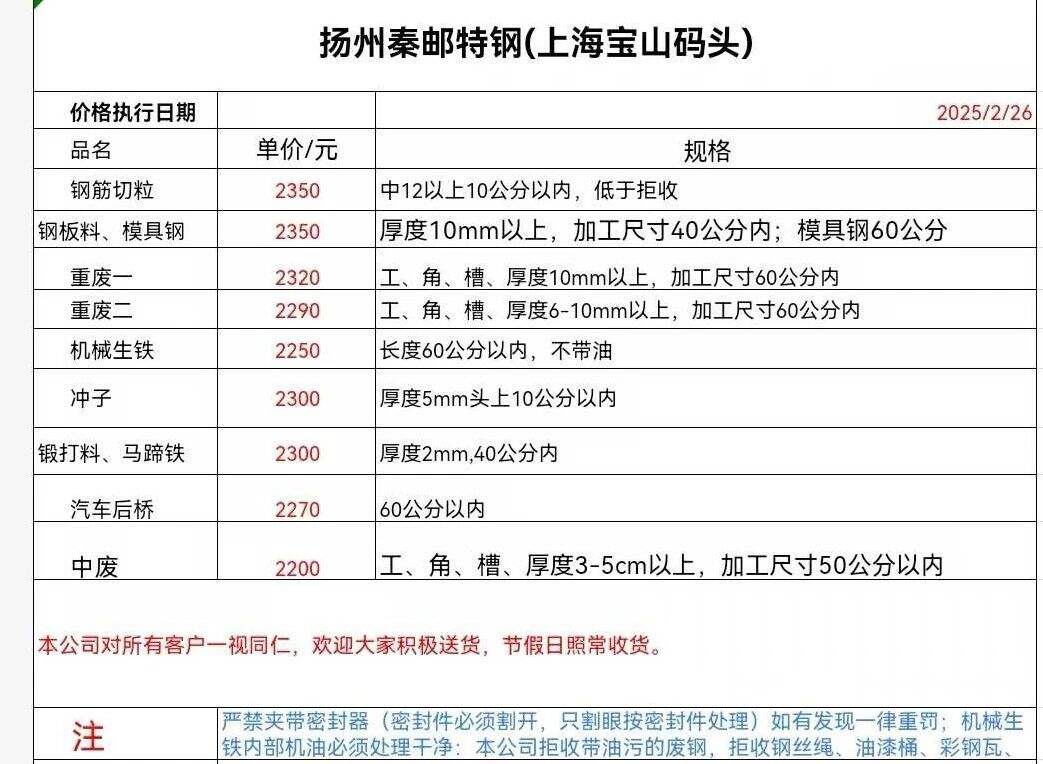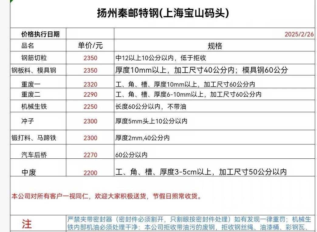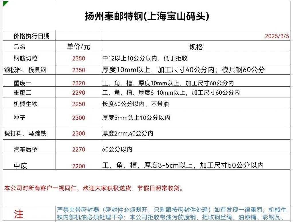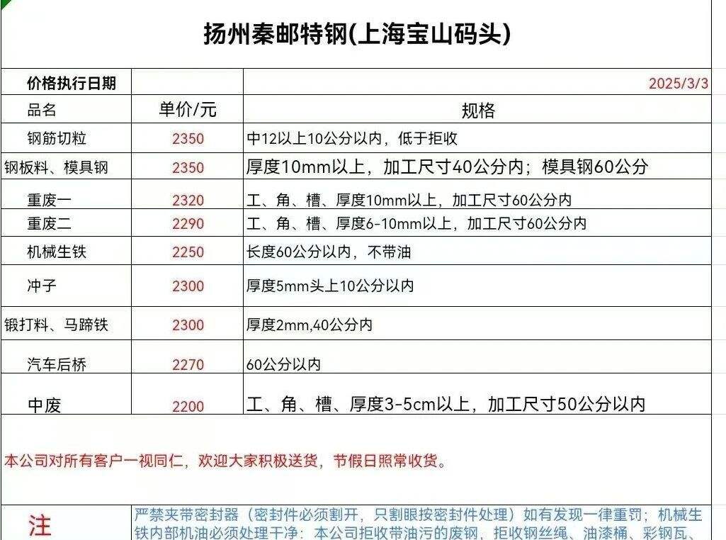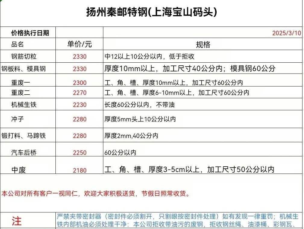 ****年*月**日扬州秦邮特钢(上海宝山码头)报价