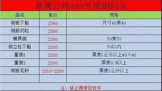 ****年*月**日上海嘉唐公路***号废钢码头废钢报价