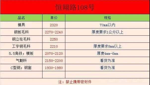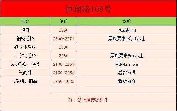 ****年*月*日上海恒翔路***号废钢报价