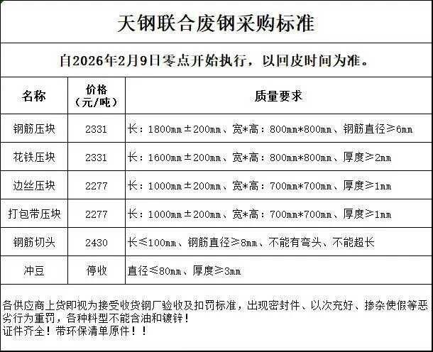 天津大无缝通知,春节停收(*月**日-*月**日),*月**日收料。
