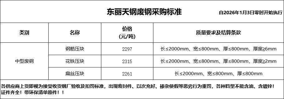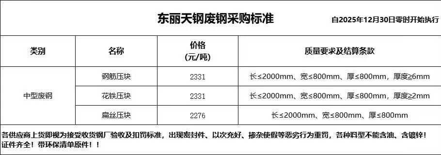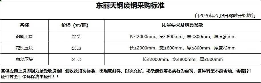 **日东丽天钢废钢执行价格