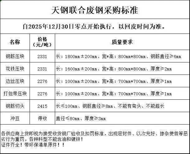 天津大无缝,本期废钢采购价格下调**元/吨。