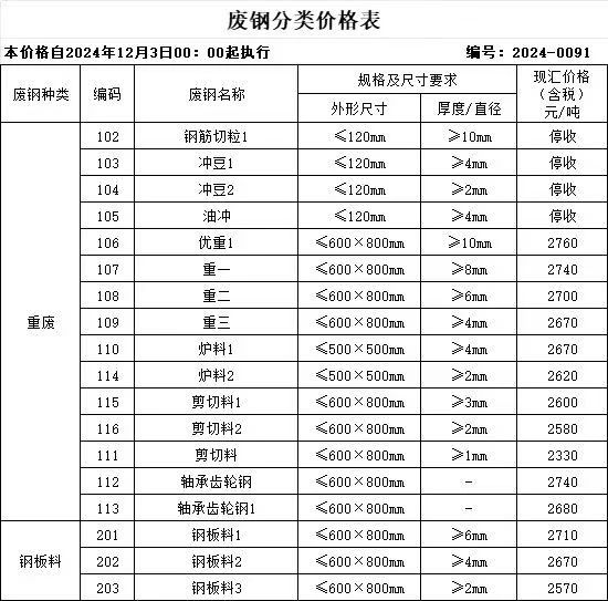 华东分公司自****年**月*日起上调废钢采购价格**元/吨,重废基价****含税