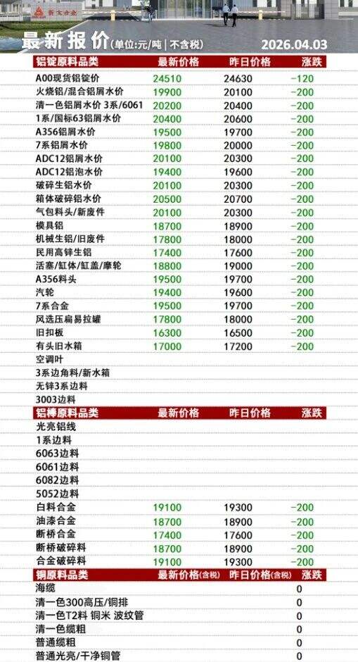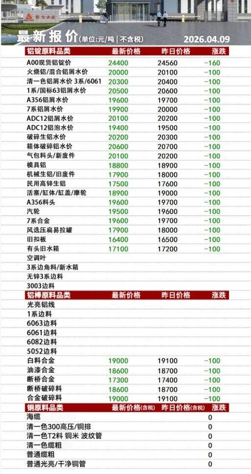 ****年*月**日安徽新太合金有限公司最新报价