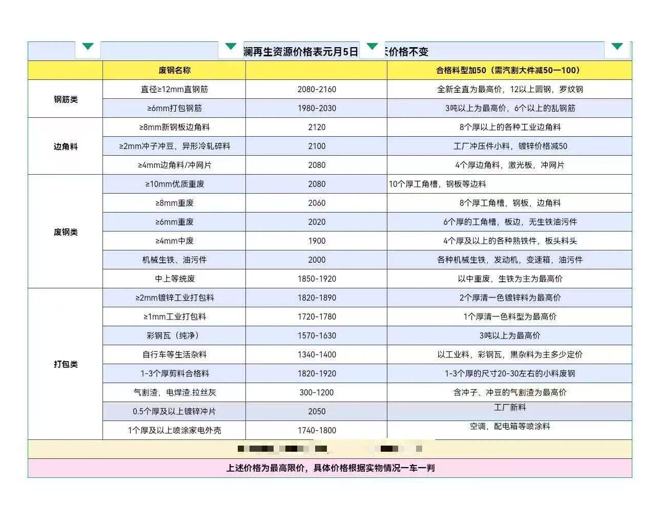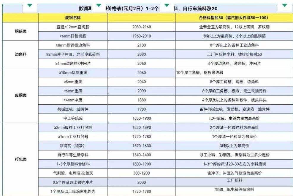 ****年*月*日彭澜再生资源价格表
