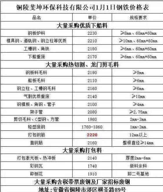****年*月*日铜陵斐坤环保科技有限公司钢铁价格表