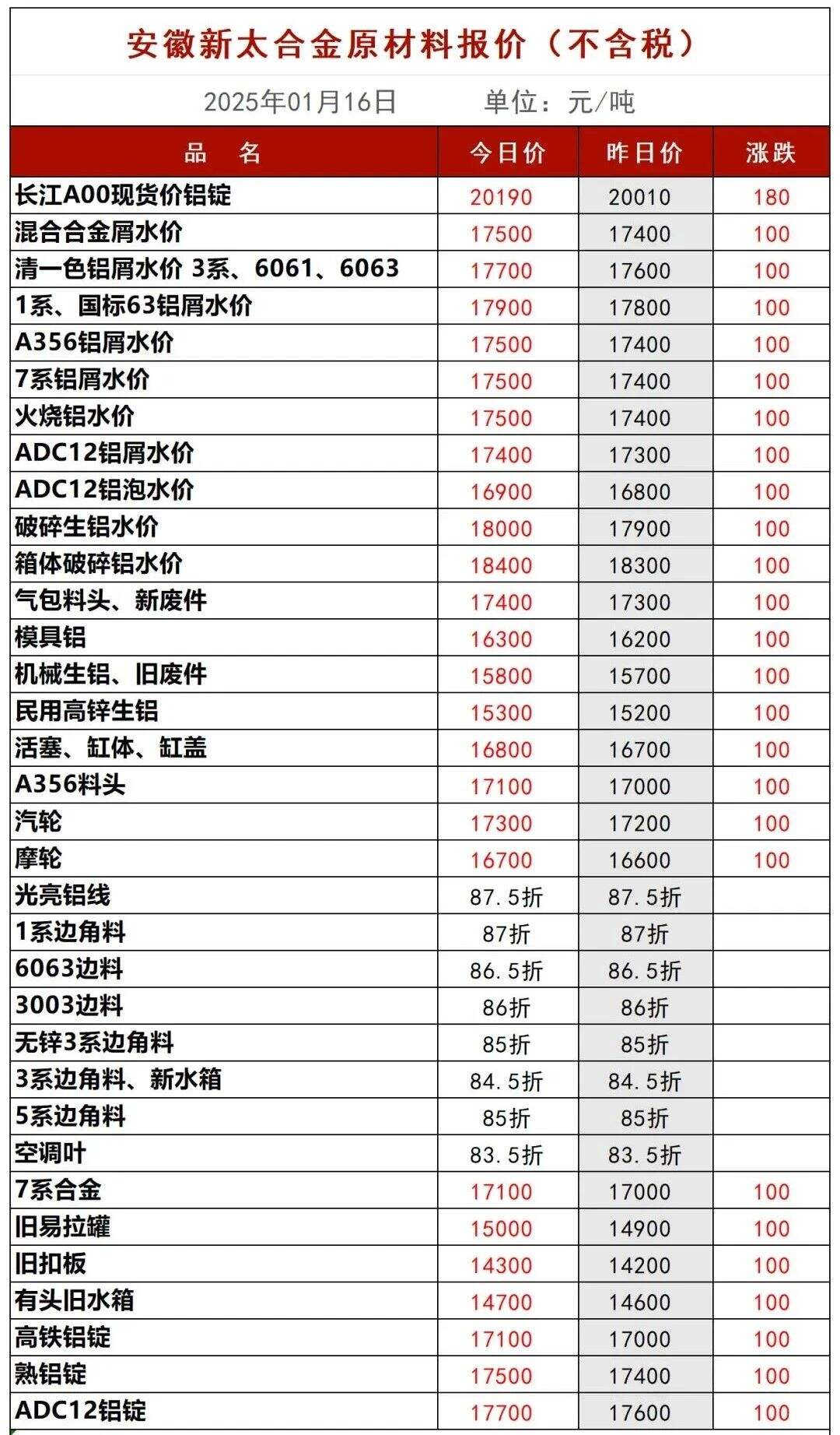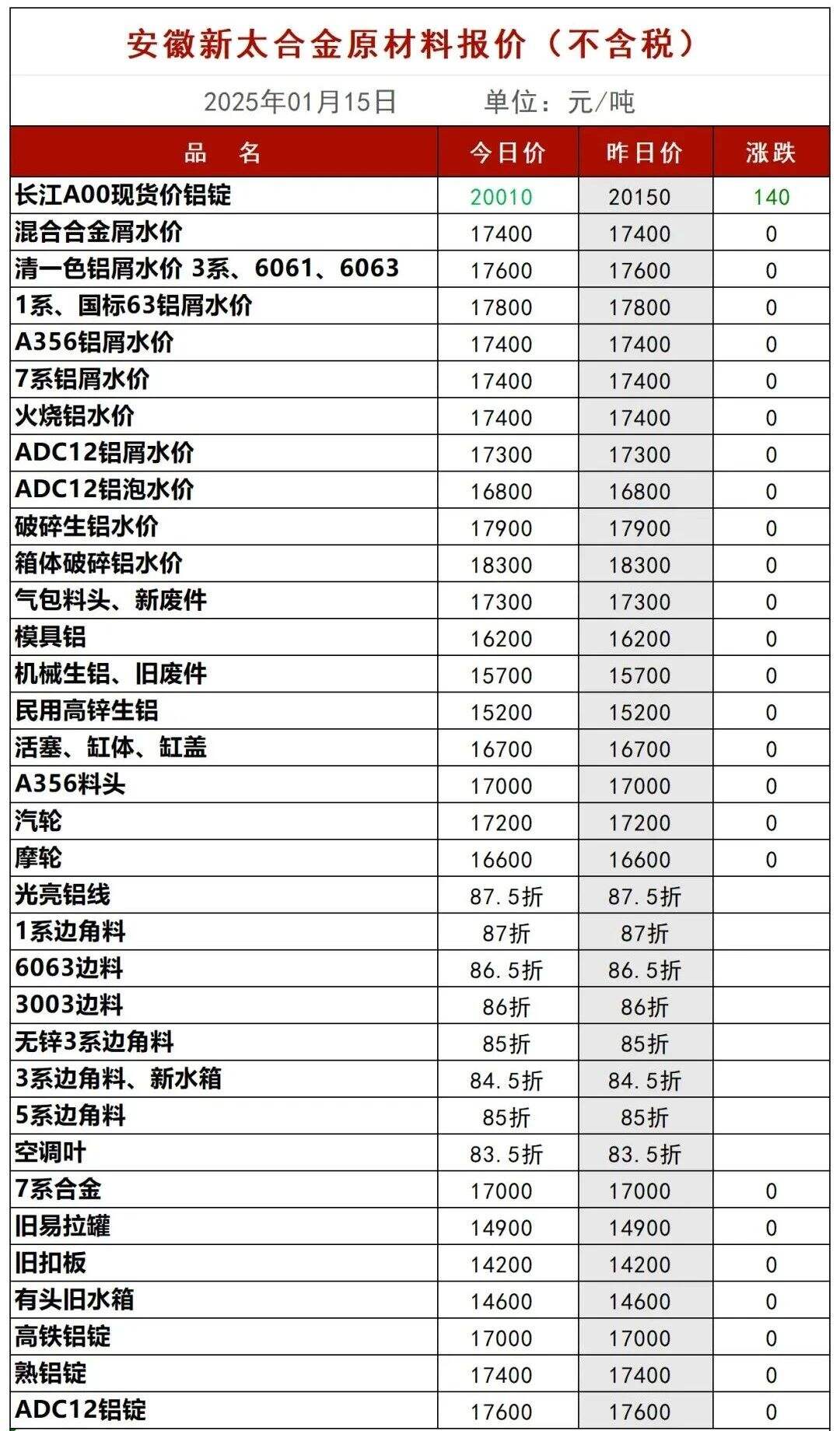 ****年*月**日安徽新太合金原材料报价