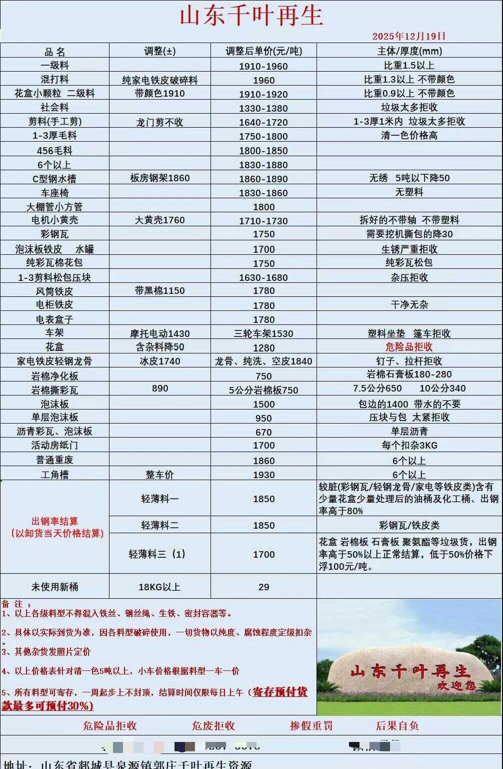 ****年**月**日山东千叶再生(临沂郯城)报价: