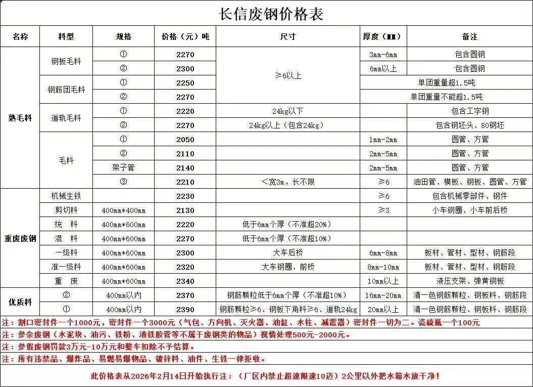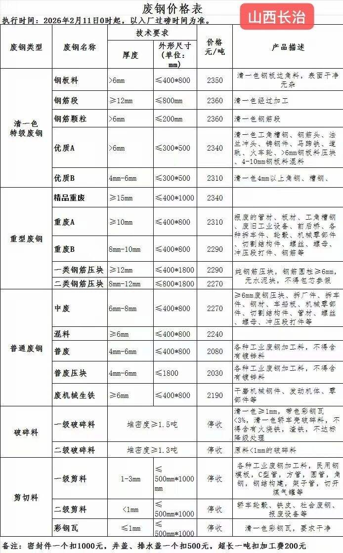 重废二级停收,重废三级停收,钢筋头一级停收,钢筋头二级停收;边角料一级****