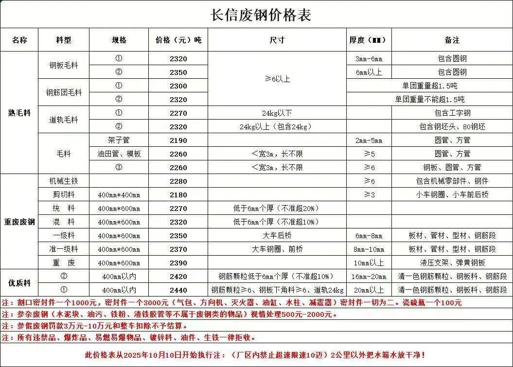 山西长信废钢通知:从****年**月**号*时废钢统一上调**元/吨,废钢车辆下午六点之前进厂,两公里外必须把水箱水放干净。长信能源处。