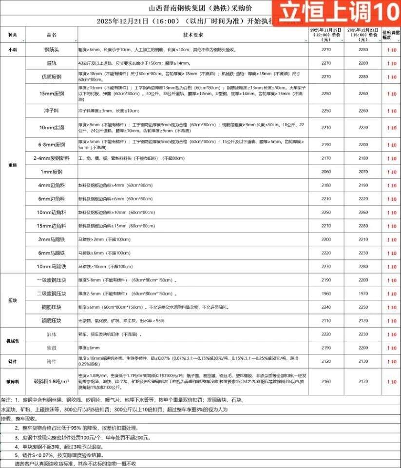 **日山西美锦钢厂废钢采购价跌**,具体价格稍后出。