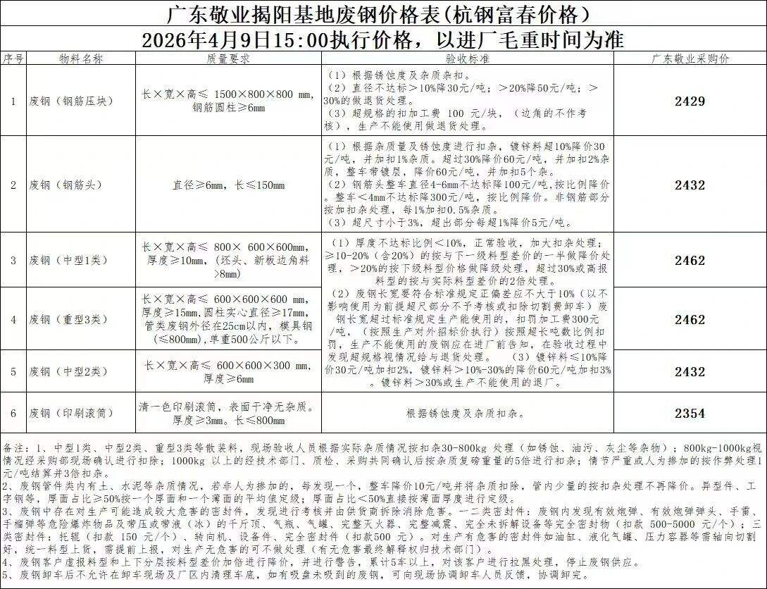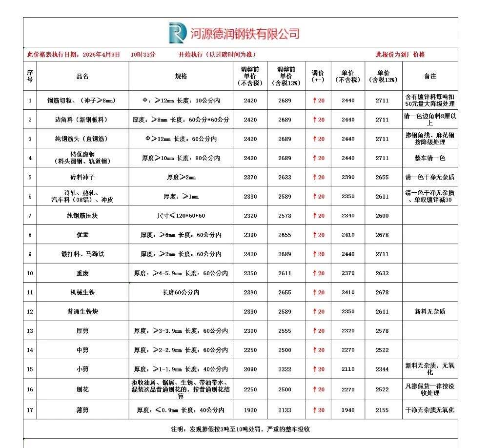 阳春****年*月**日至下次调价时止,各废钢品种价格普涨**元。
