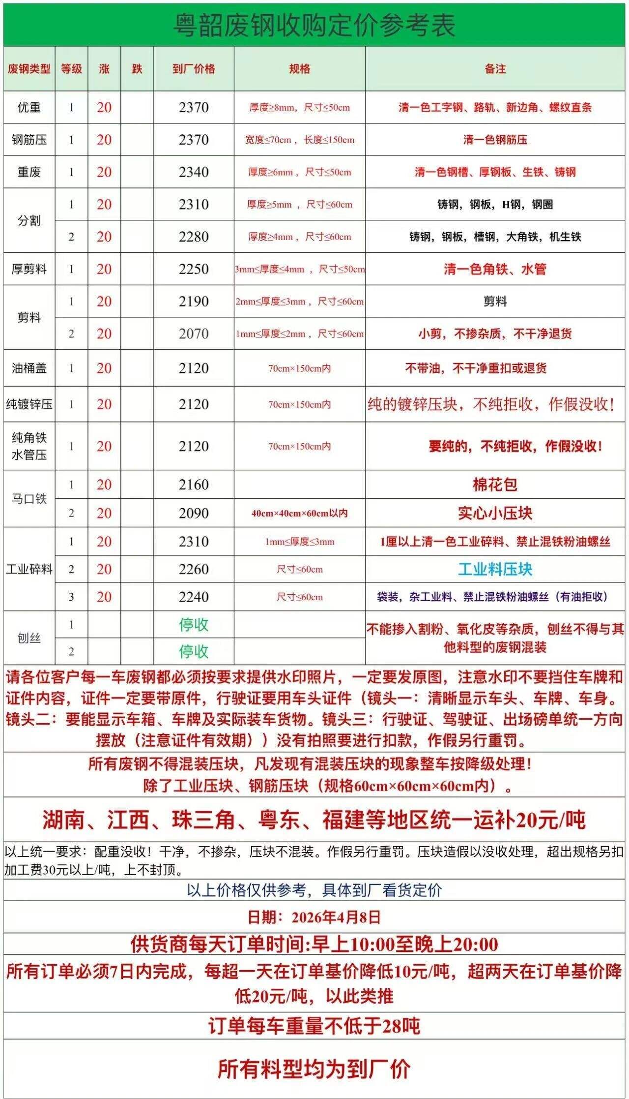 **日珠海粤裕丰最新价:钢筋粒****,精料废钢****优重废钢****冲子料****工业重废****小剪料****。含税价。