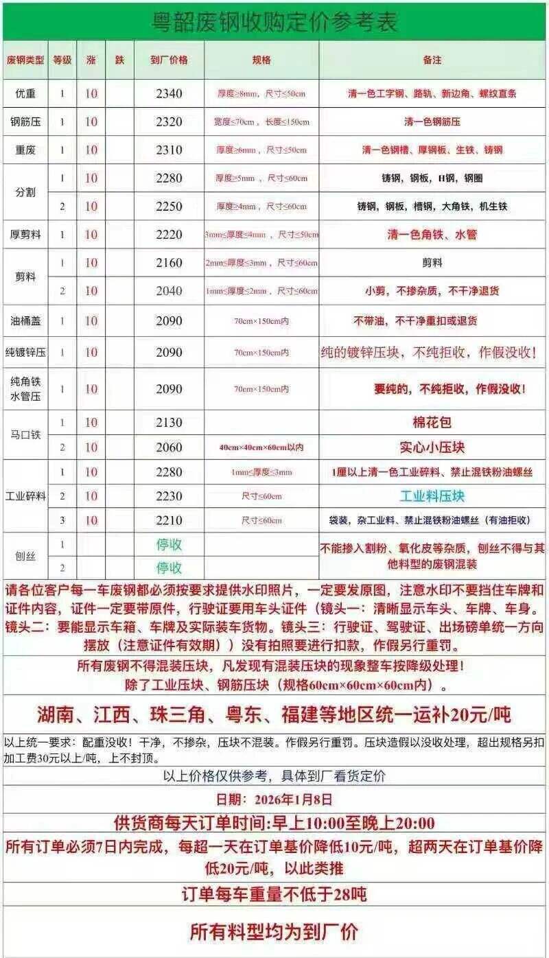 *日韶关粤韶废钢到厂价跌**,执行价: