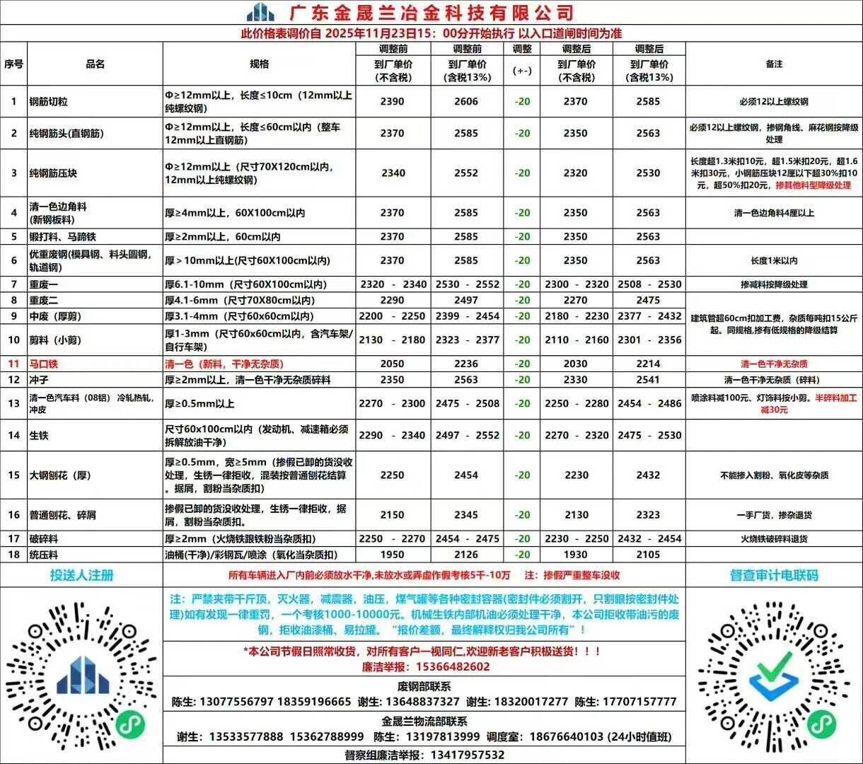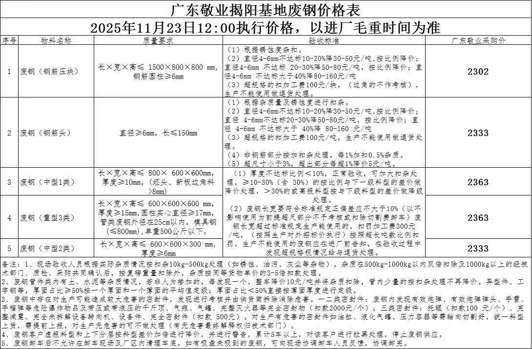 **日广东揭阳国鑫废钢价格调整: