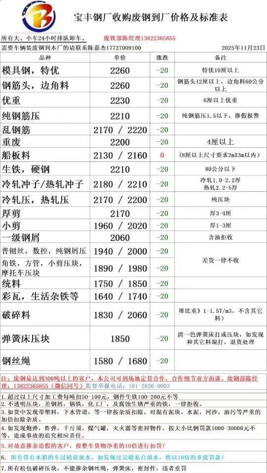 **日江门宝丰废钢跌**: