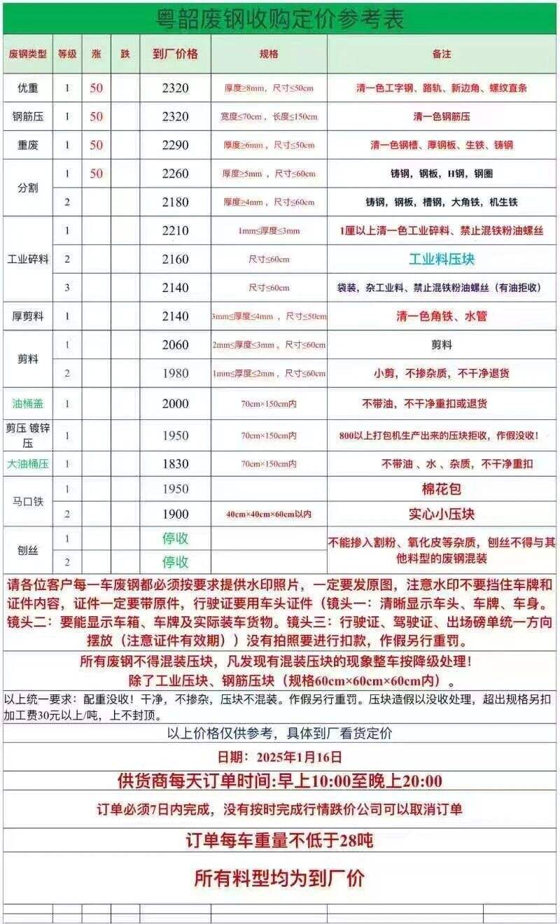 *月*日广东敬业揭阳基地:钢筋压块****,钢筋头****,中型*类****,重型*类****,中型*类****,一级剪切料停收,不含税
