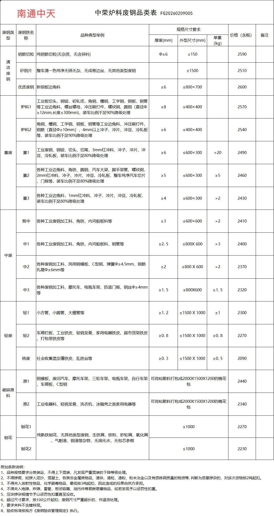 南通中天废钢收购价从****年*月*日起,矽钢片、刨花不变,其他品类上调**元/吨