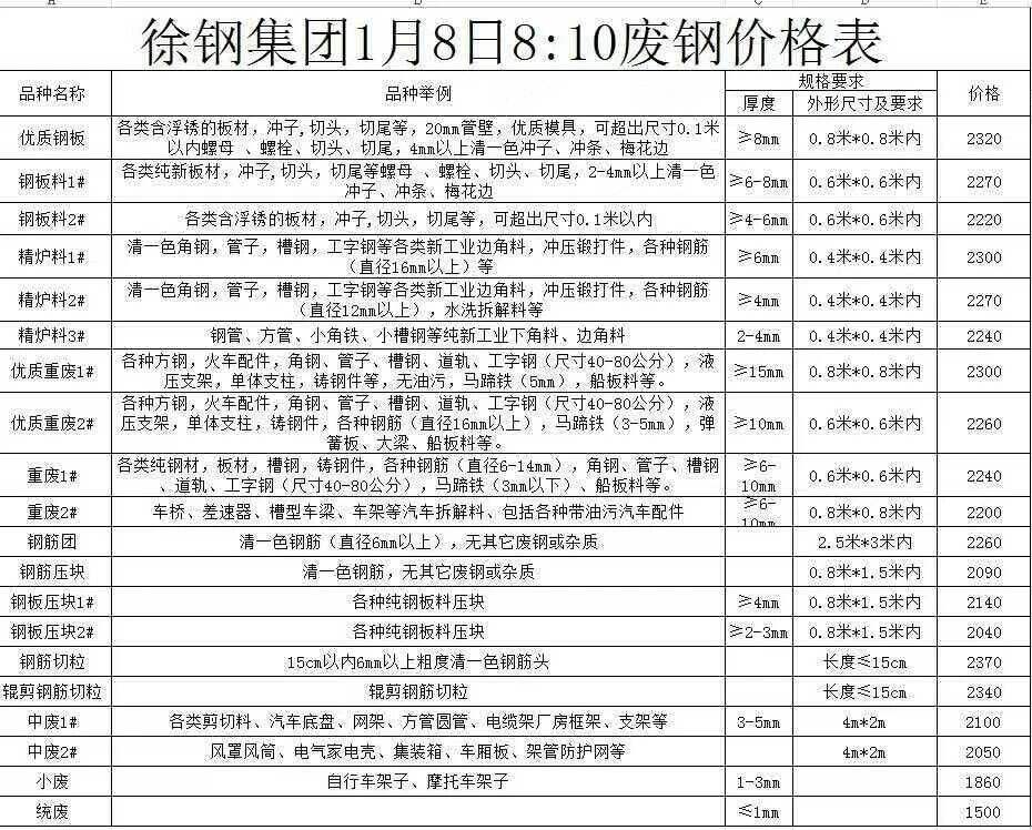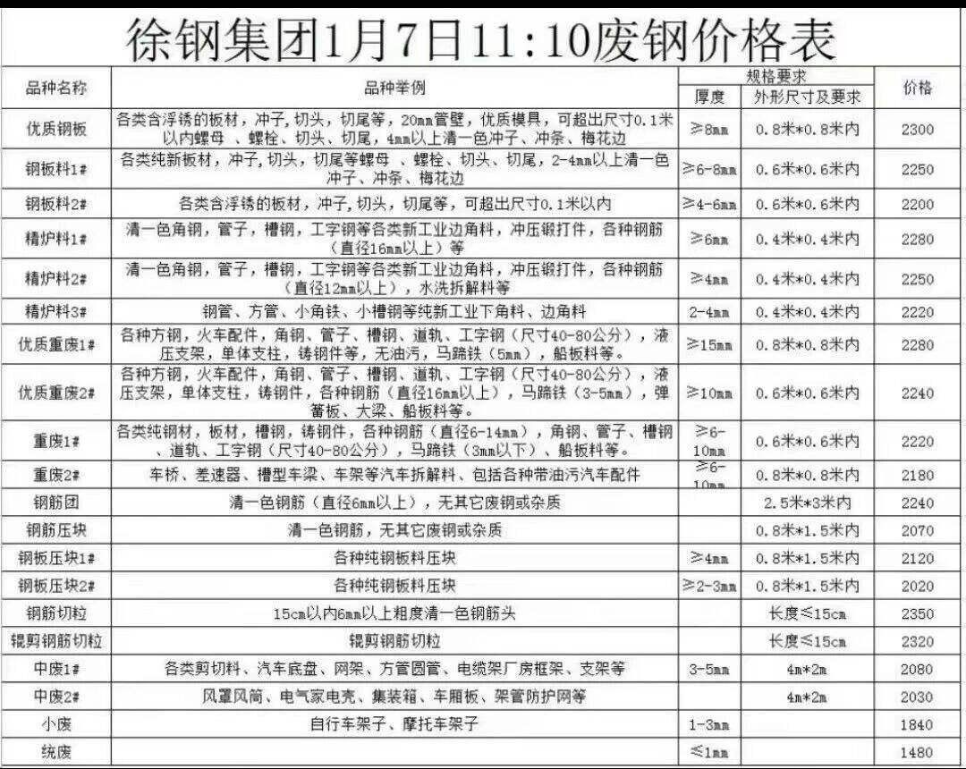 徐钢集团*月*日*:**开始废钢调整价格,调整后: