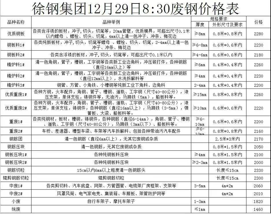 徐钢集团**月**日*:**开始废钢调整价格,调整后: