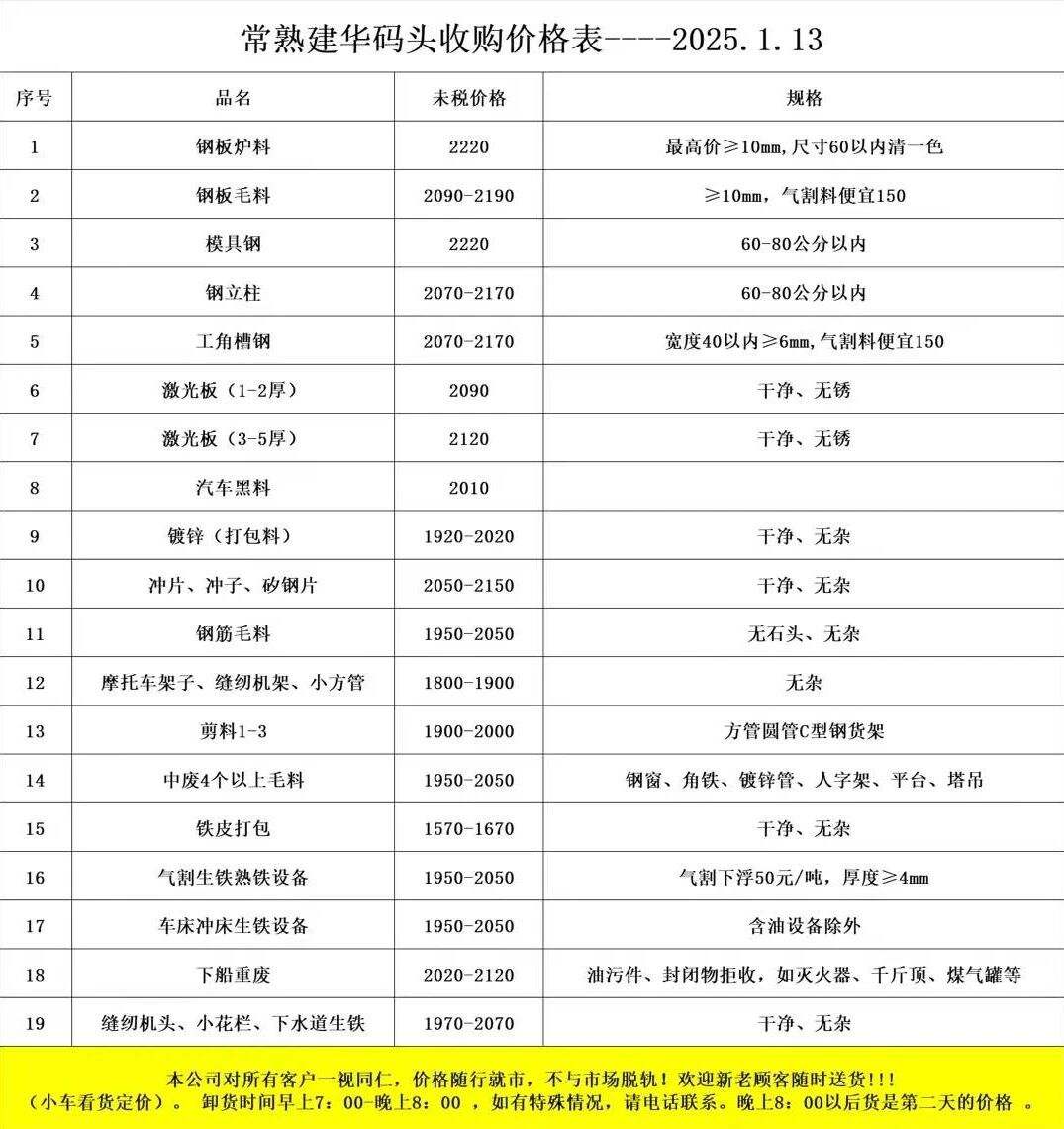 *:剪切料毛料、C行钢、方管、生铁管、浇柱管:****-****(*-*厚)