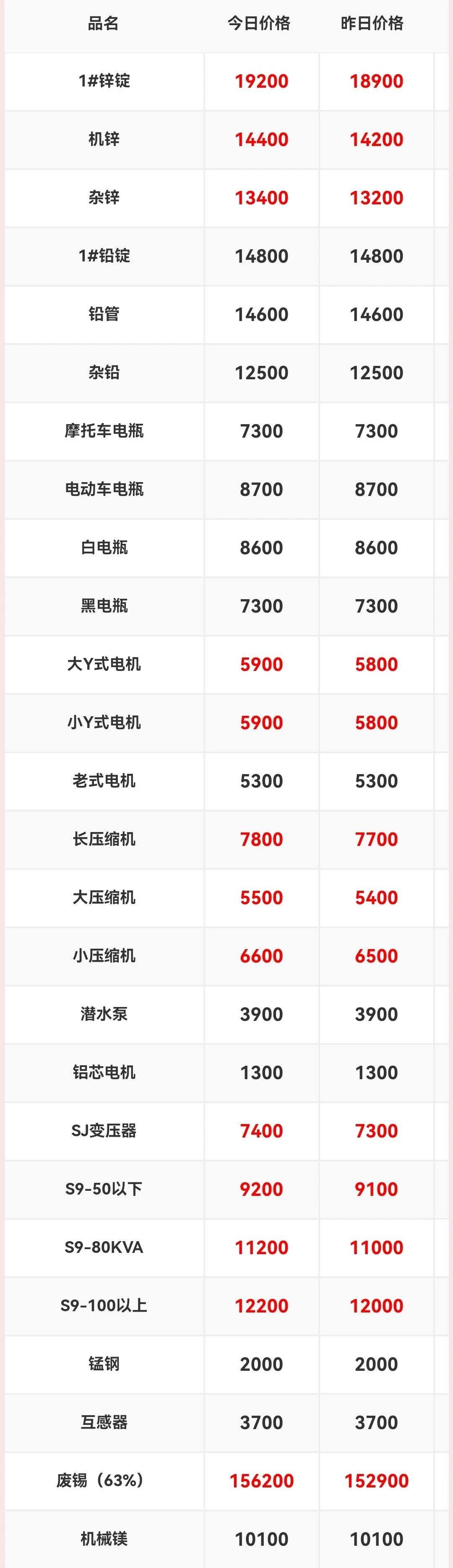 **月*日江西保太有色金属集团有限公司铅锌、电机收购价