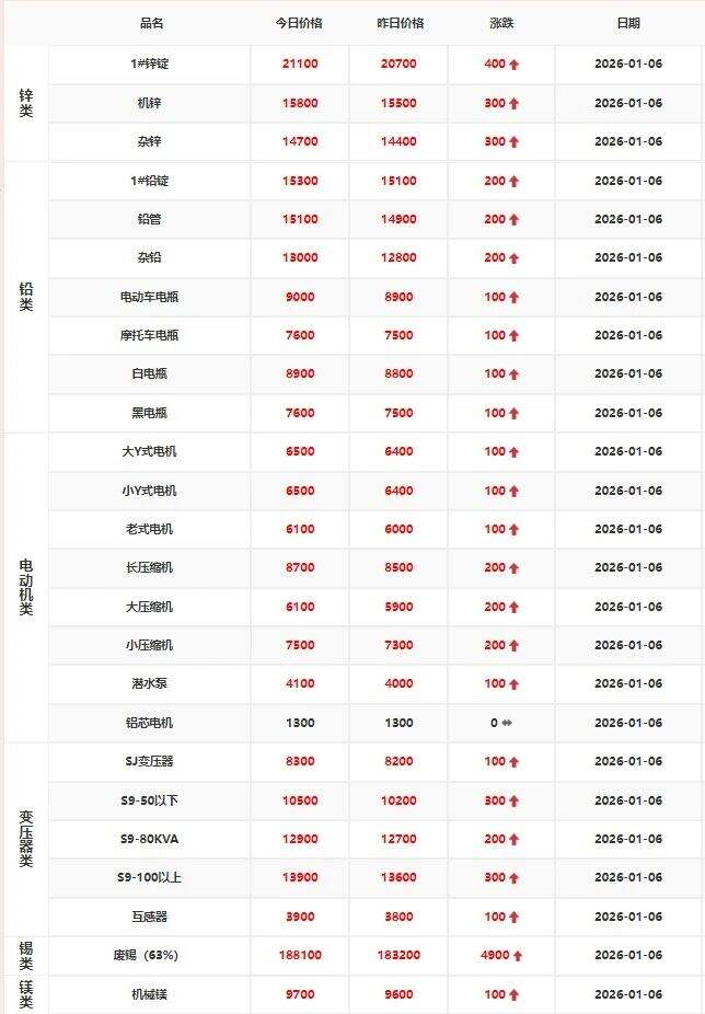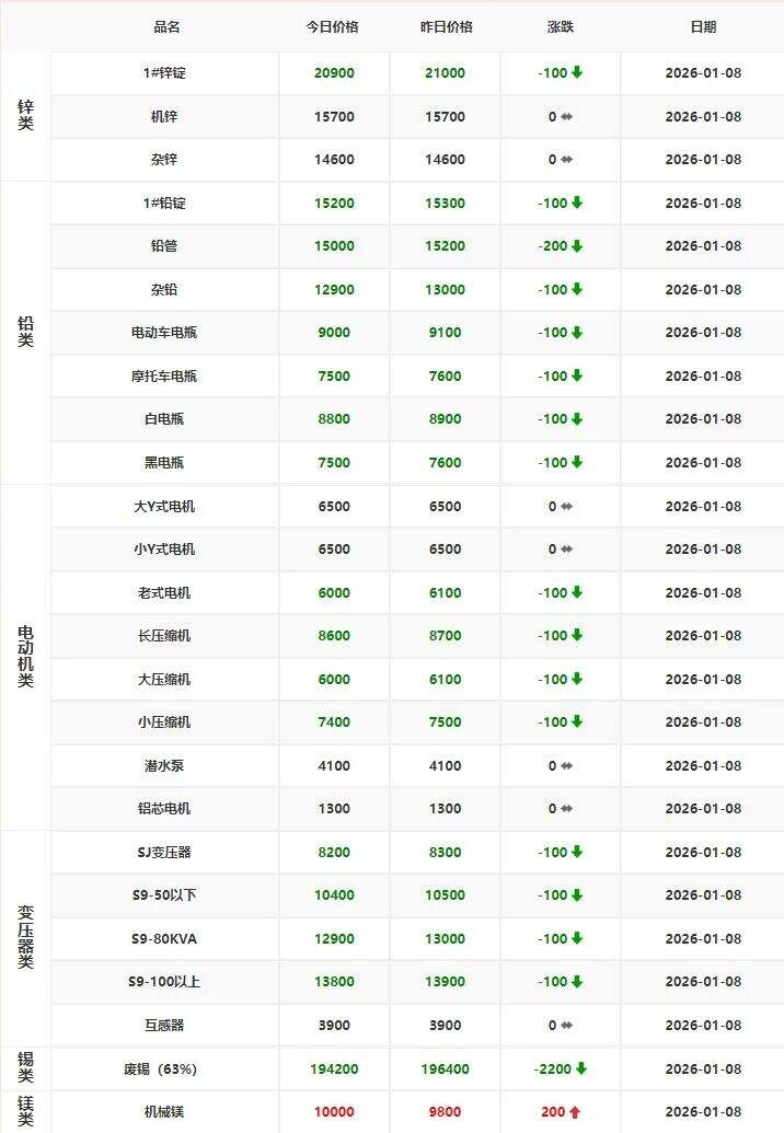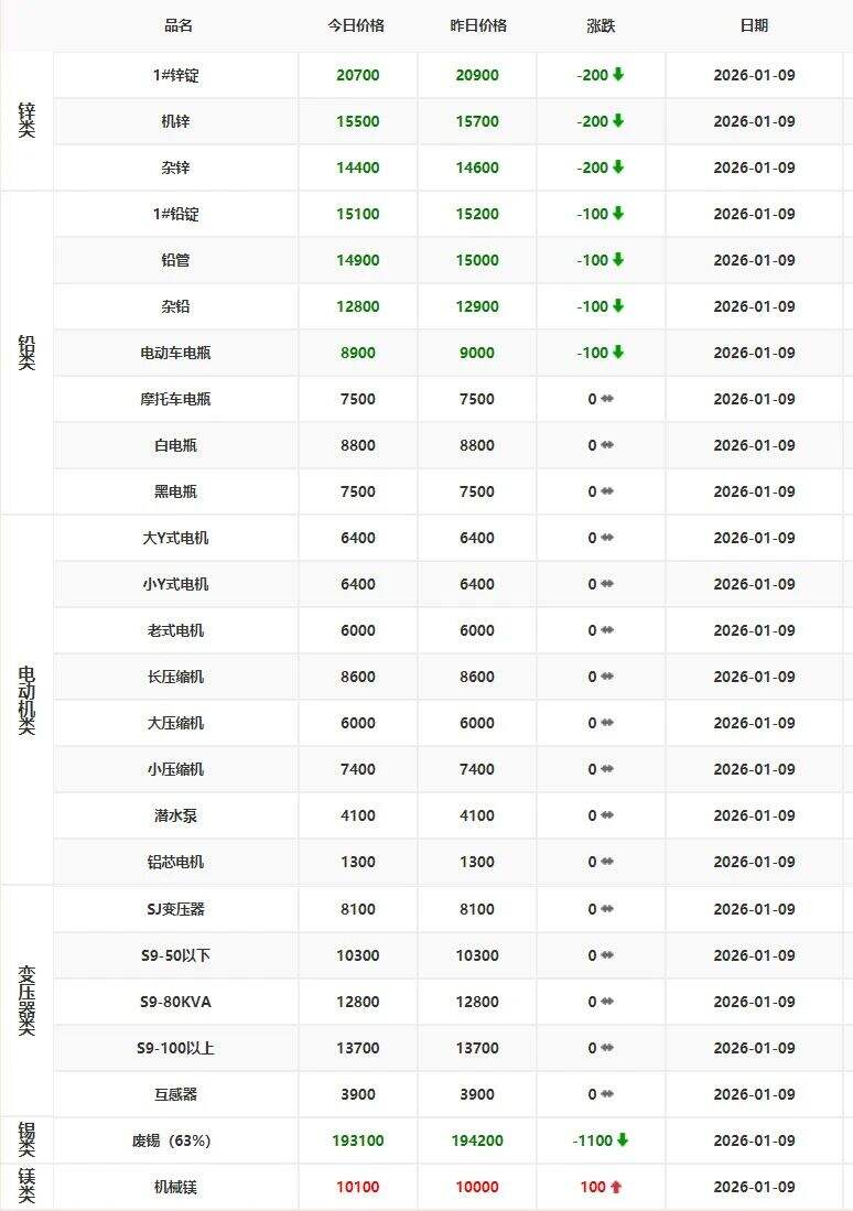 ****年*月*日江西保太有色金属集团有限公司铅锌,电机收购价格