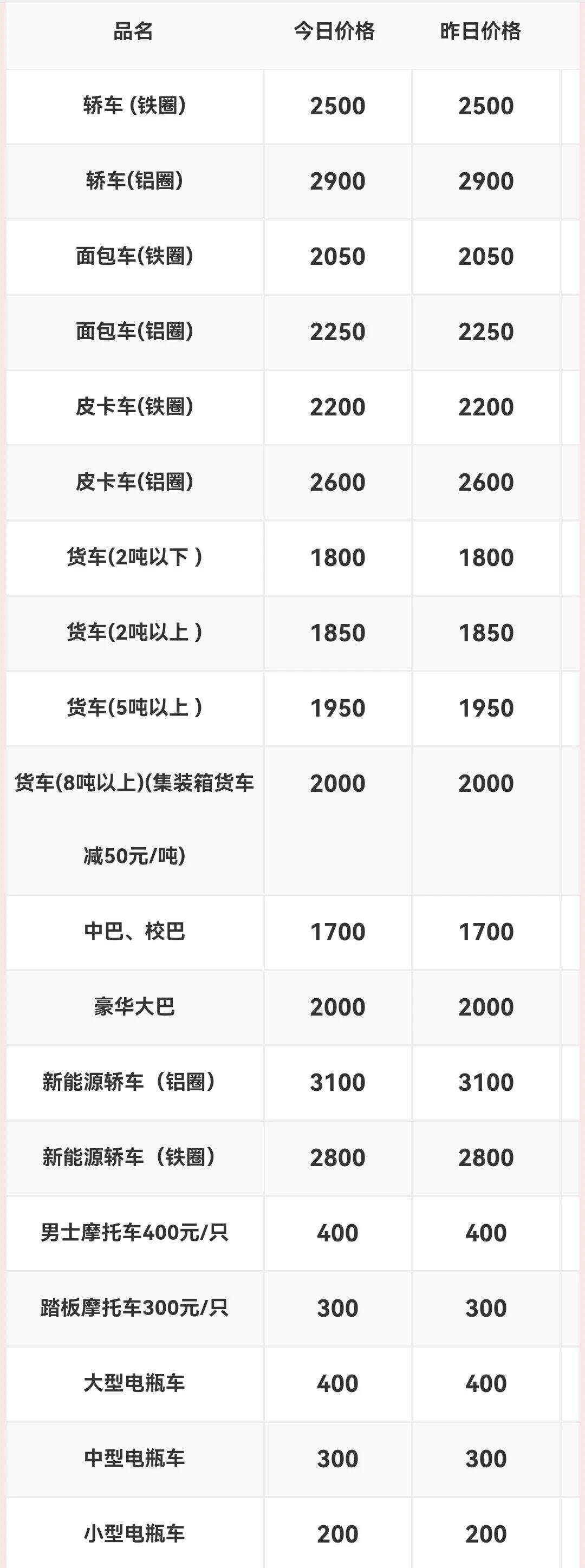 ****年**月*日江西保太有色金属集团有限公司废钢铁收购价