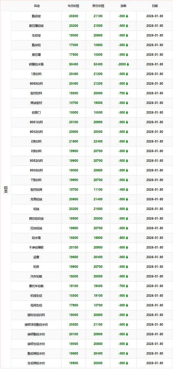 ****年*月*日江西保太有色金属集团有限公司废铝报价