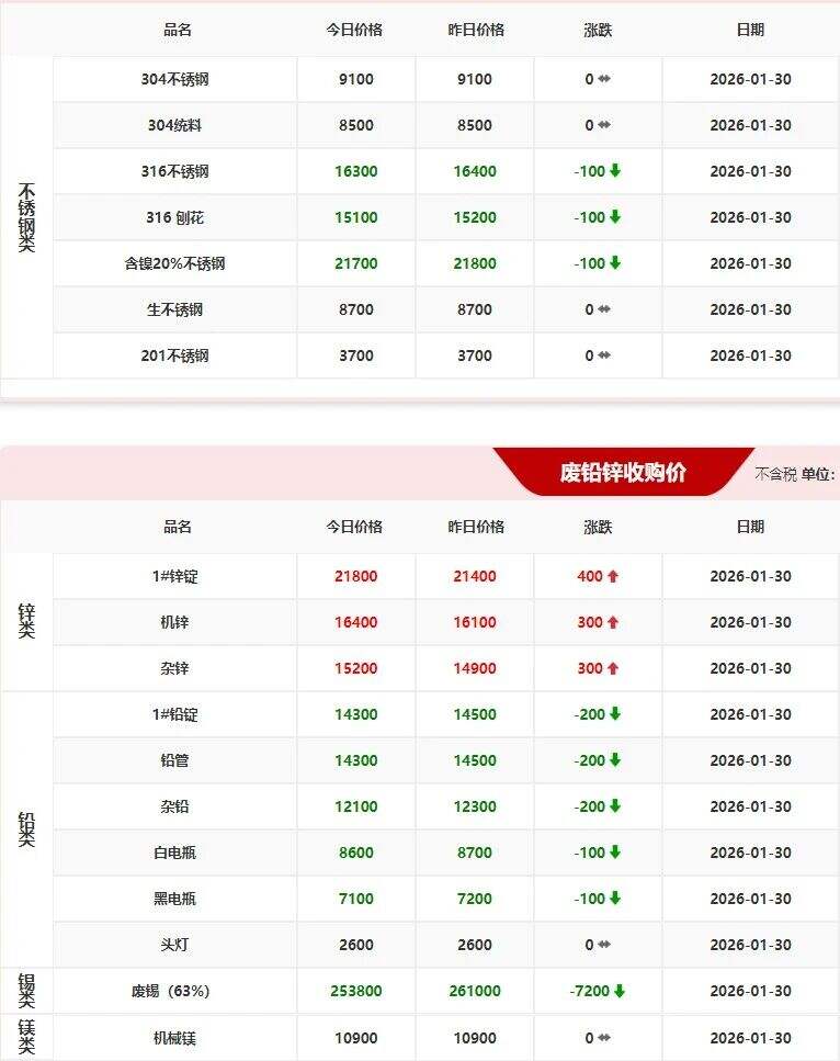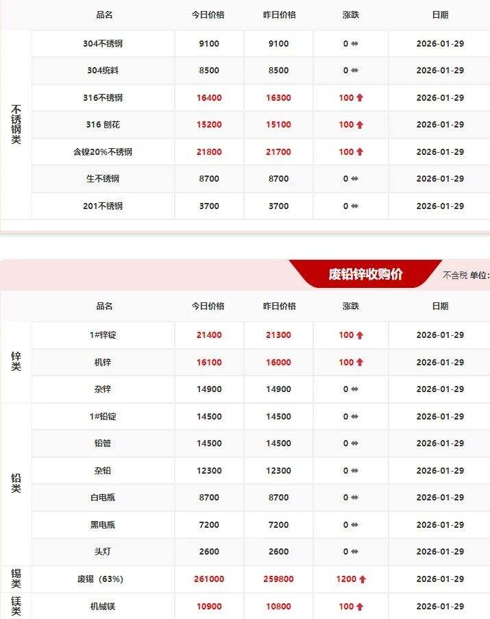 ****年*月*日江西保太有色金属集团有限公司不锈钢,铅锌锡镁类报价
