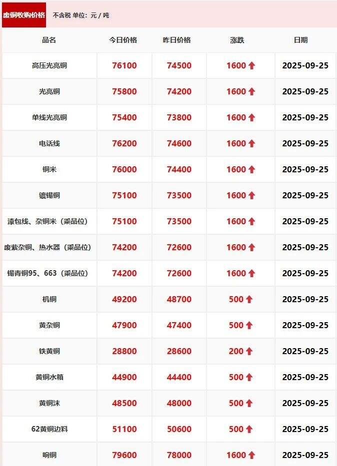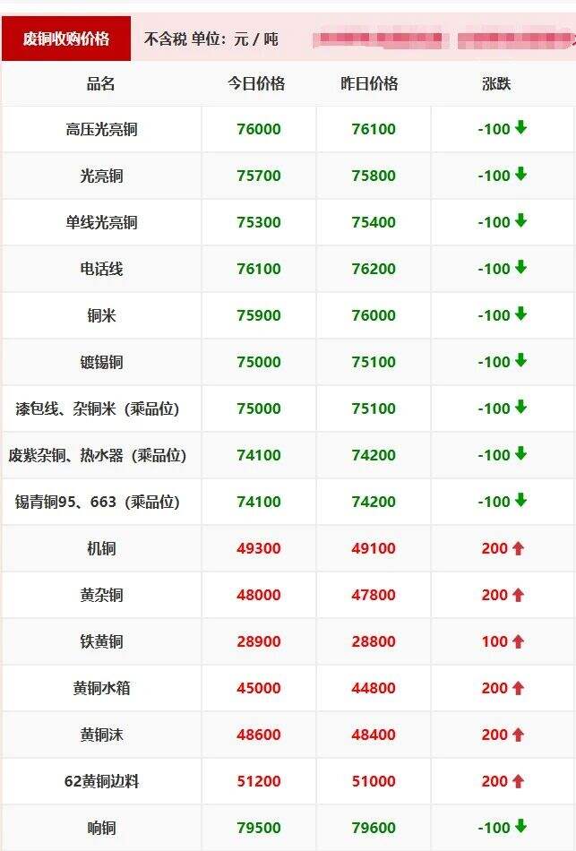 ****年*月**日江西保太有色集团废铜报价