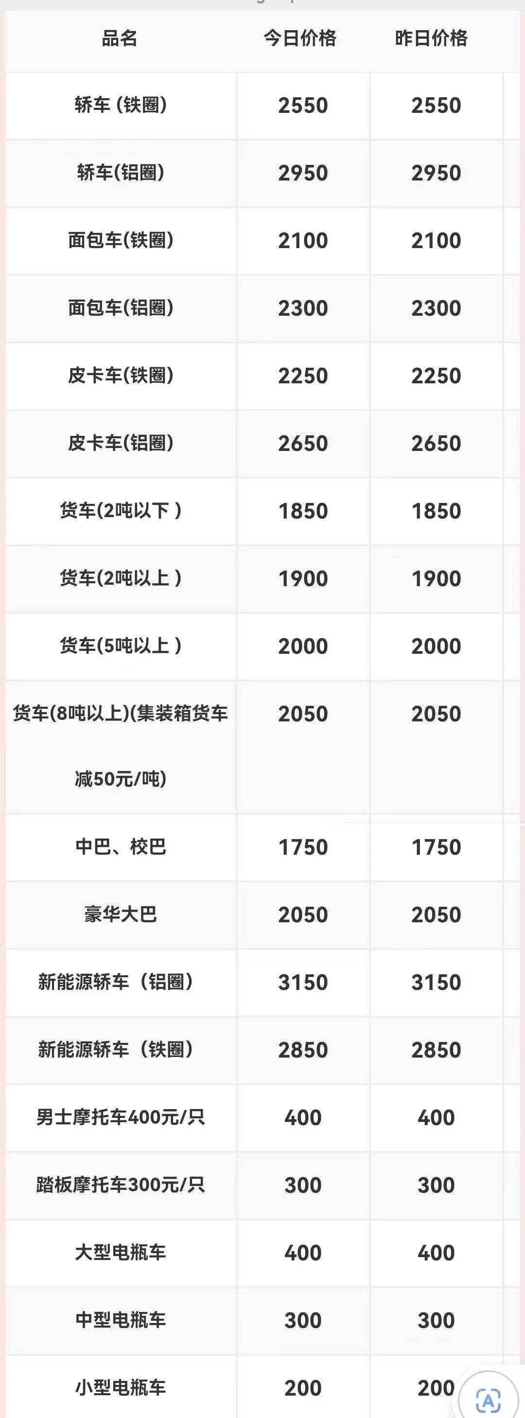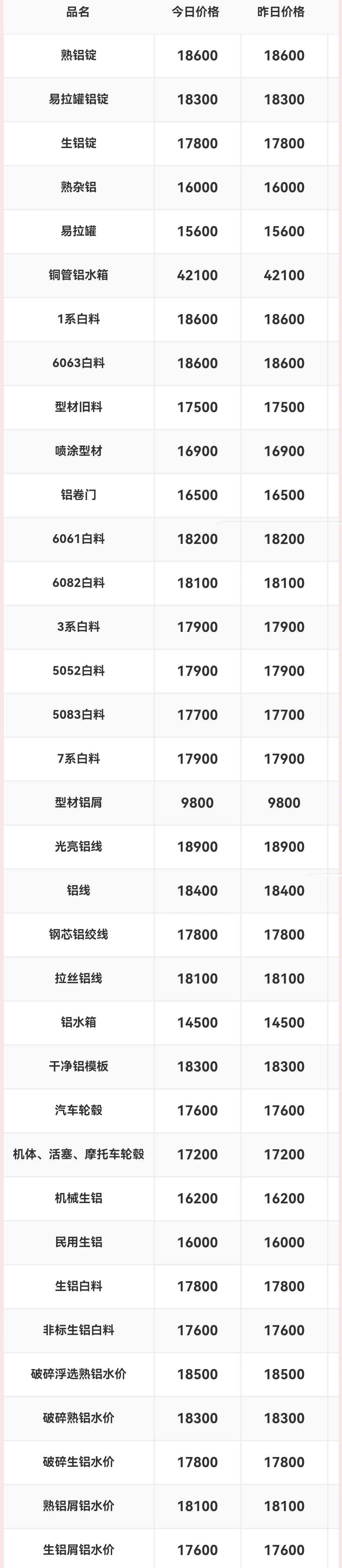 ****年*月**日江西保太有色金属集团废铝收购价