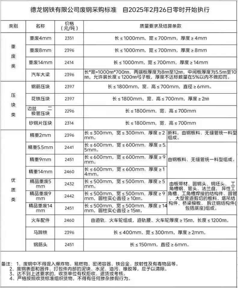 尊敬的客户您好!东海特钢通知,****年*月**日即刻起跌**重D****,重C****,重B****,重A****,优质二****,优质一****,精品钢****,轻薄料、爆炸物、掺假重罚、带油拒收,友情提示,进厂前水箱必须放空,国六以上车型正常进出厂,严禁使用国五或换车头的方式进厂!