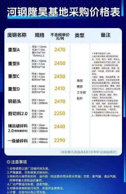 ****年*月*日河钢隆昊基地采购价格表