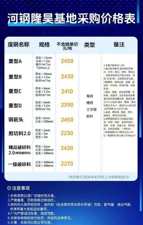 ****年*月**日河北河钢隆昊基地采购价格表